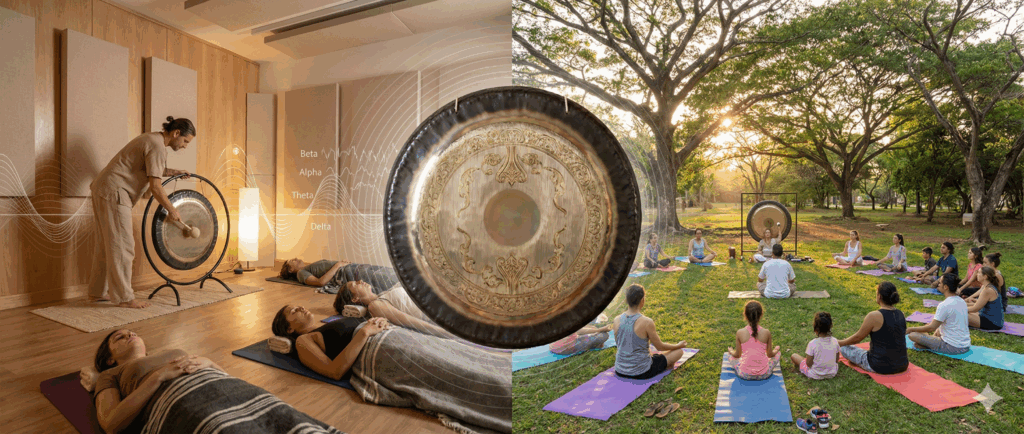 Aunque honramos la tradición del Gong, nuestro enfoque es biológico. Entendemos el sonido como física aplicada al sistema nervioso. No necesitas «creer» en la sonoterapia para que funcione; tu cuerpo responde a las frecuencias bajando los niveles de cortisol y cambiando las ondas cerebrales de Beta (alerta) a Theta (restauración), independientemente de tus creencias espirituales.