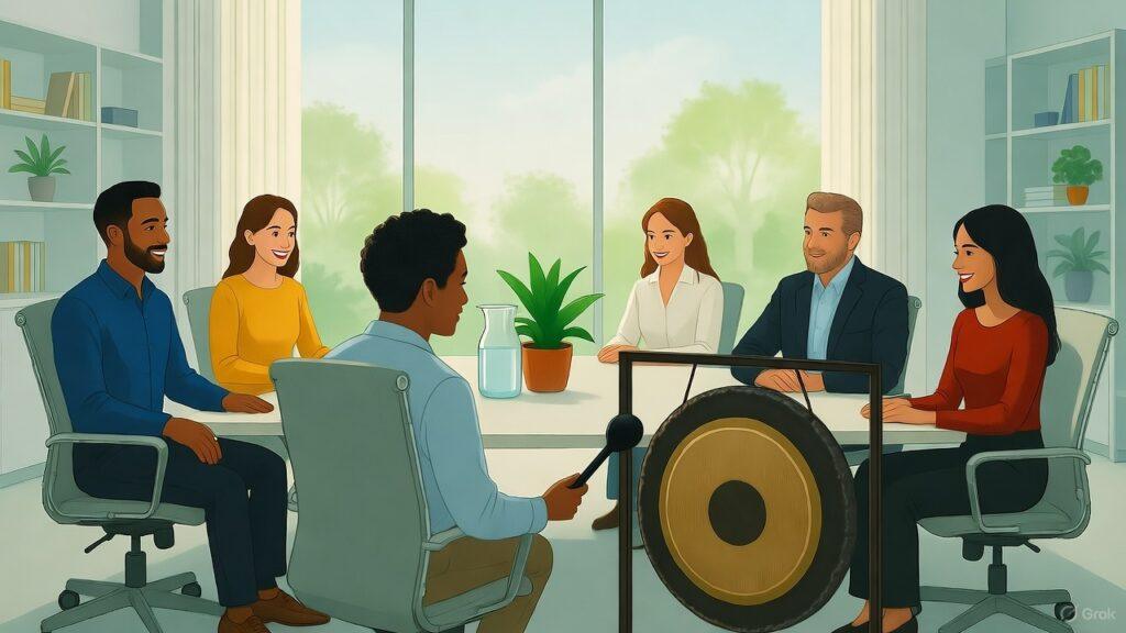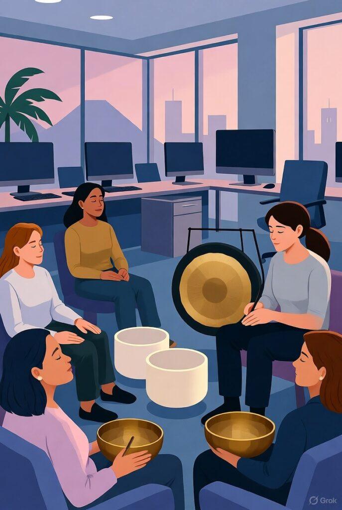 Mensual: Jornadas de bienestar integral con baños de gong y meditación guiada, perfectas para reforzar la cohesión del equipo.